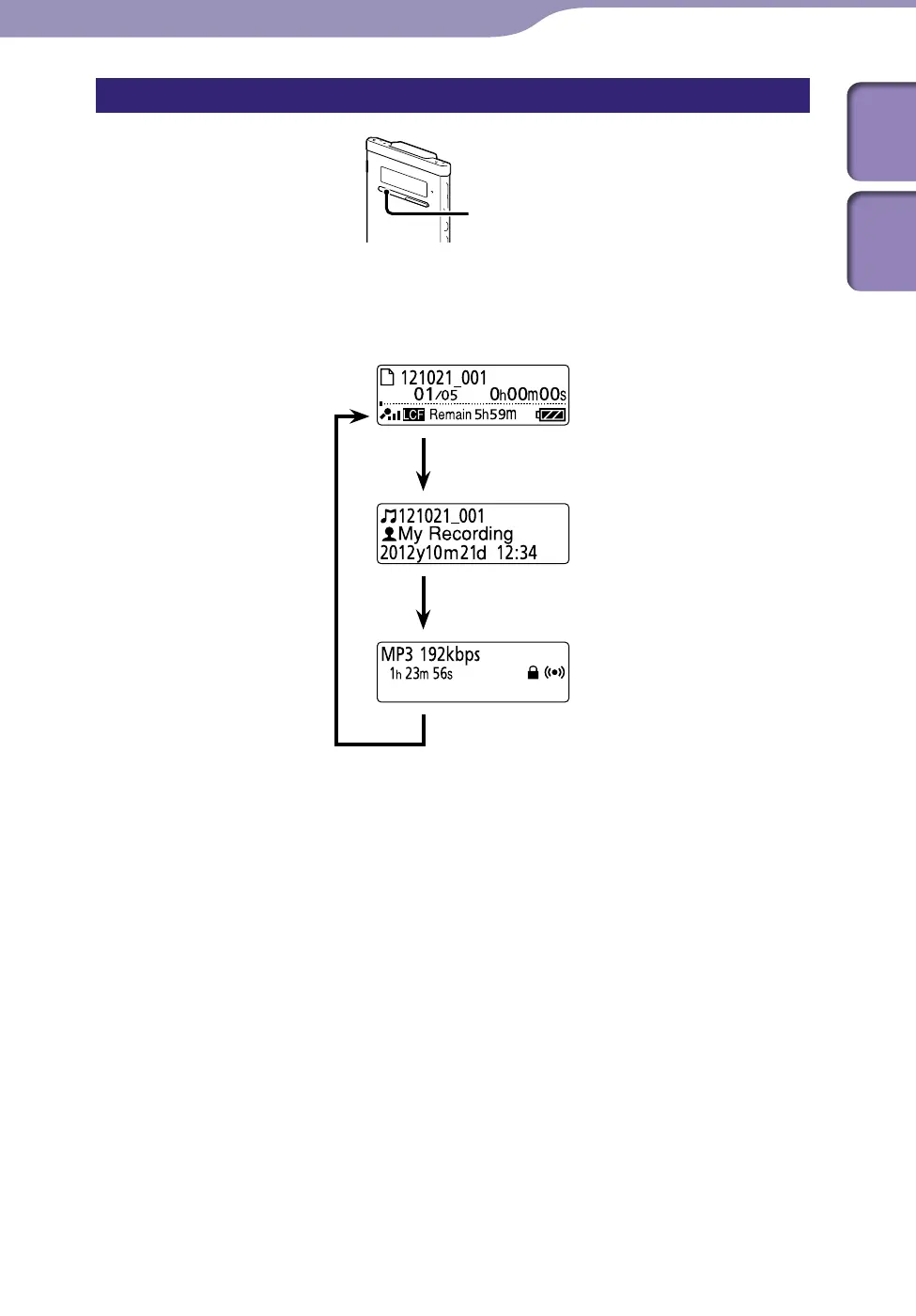 You can display the file information of the current file by pressing STOP in