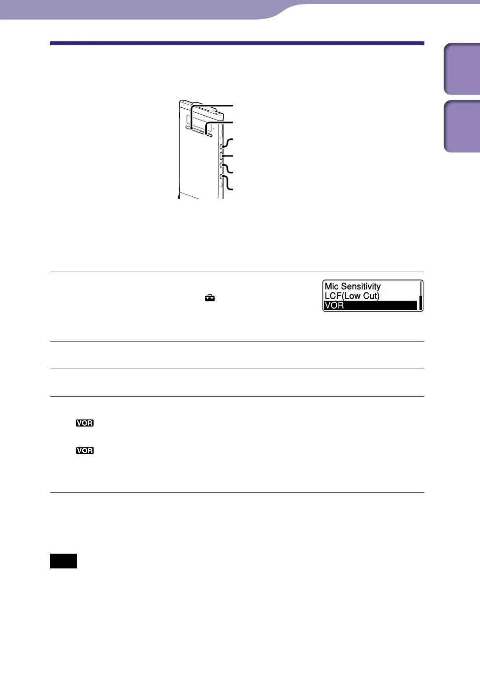 changed the “Mic Sensitivity” setting, or for an important recording, set “VOR” to “OFF”