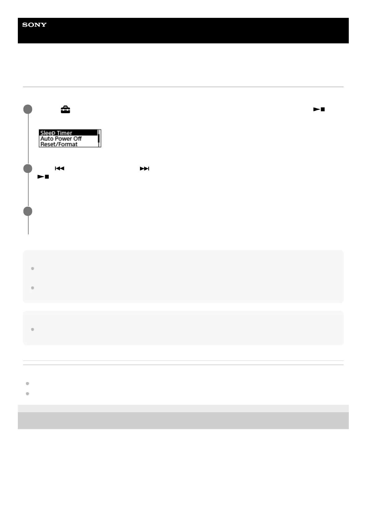 If the Auto Power Off function is turned on, your IC recorder may turn off before the time period specified for the sleep timer