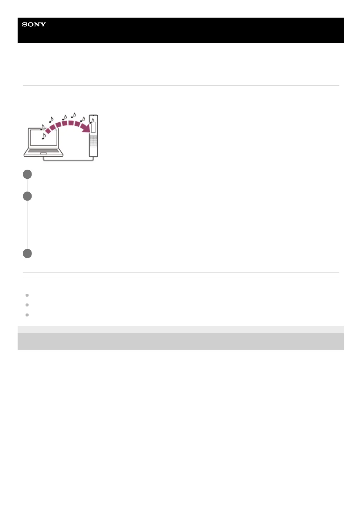 You can copy music and audio files LPCM (.wav) / MP3 (.mp3) / WMA (.wma) / AAC-LC (.m4a) from a computer to your