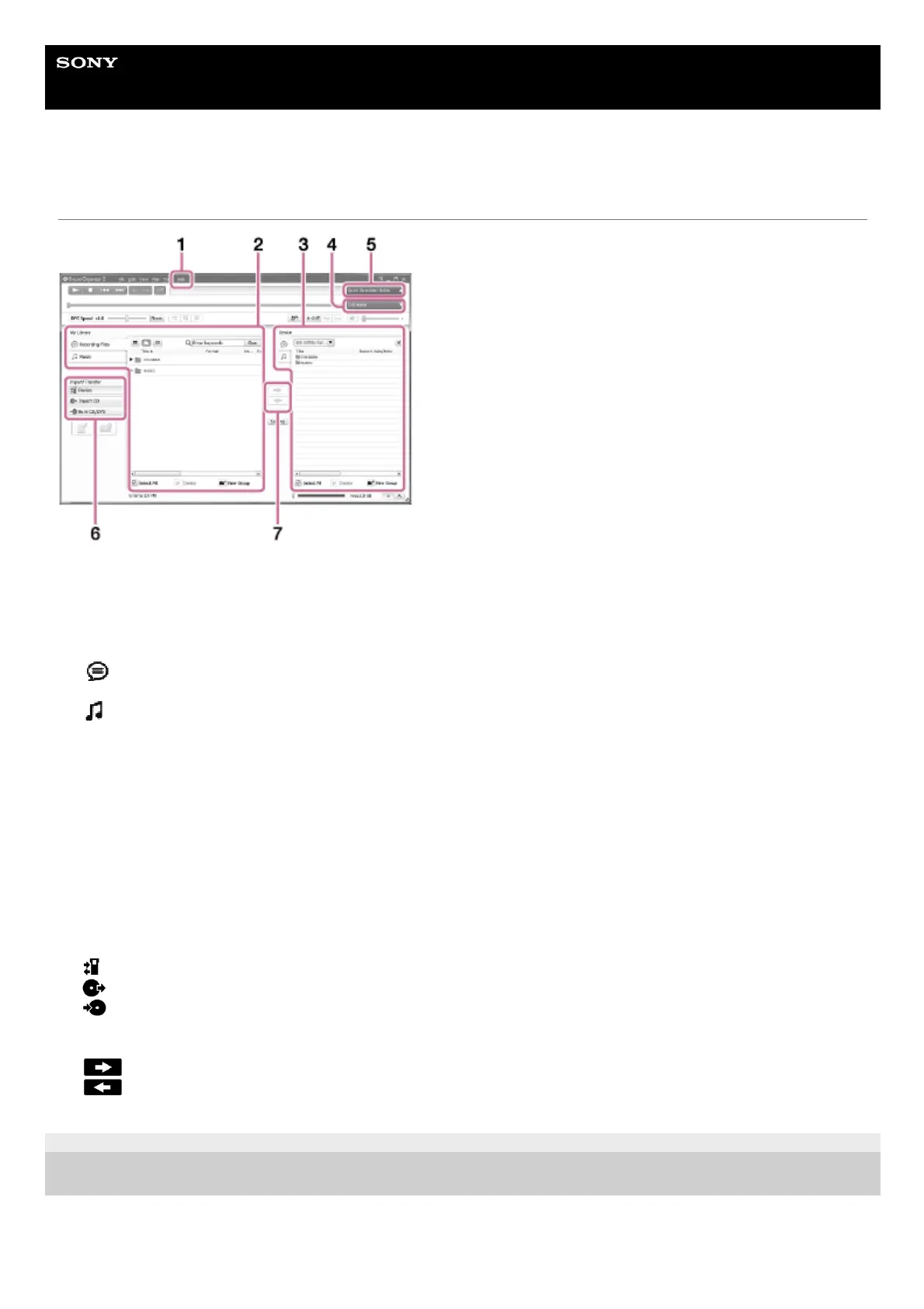 : Imports the files from the connected IC recorder's built-in memory to My Library of Sound Organizer 2.