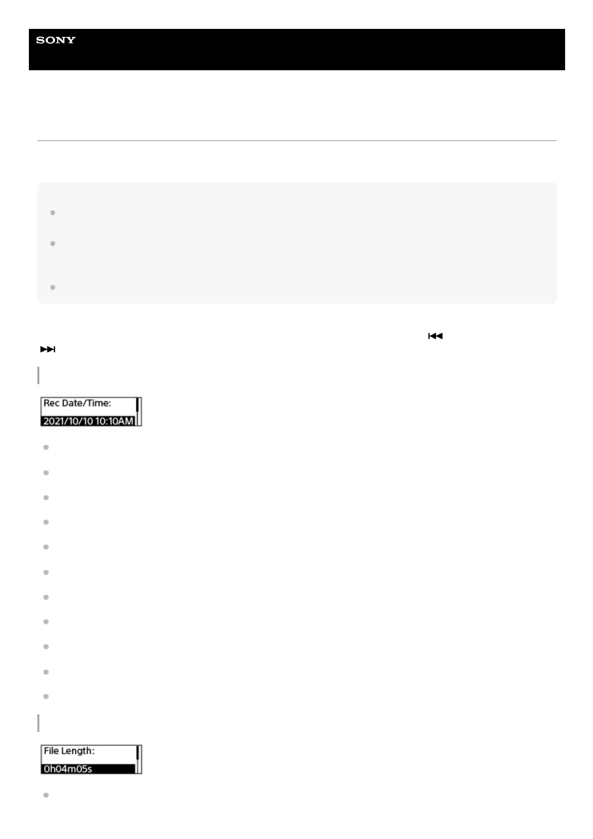 To view the information about a particular file, select a file you recorded with your IC recorder or a music file and select
