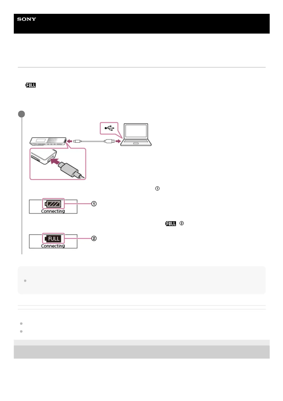 If you use the IC recorder for the first time or you have not used it for an extended period of time, charge the battery until