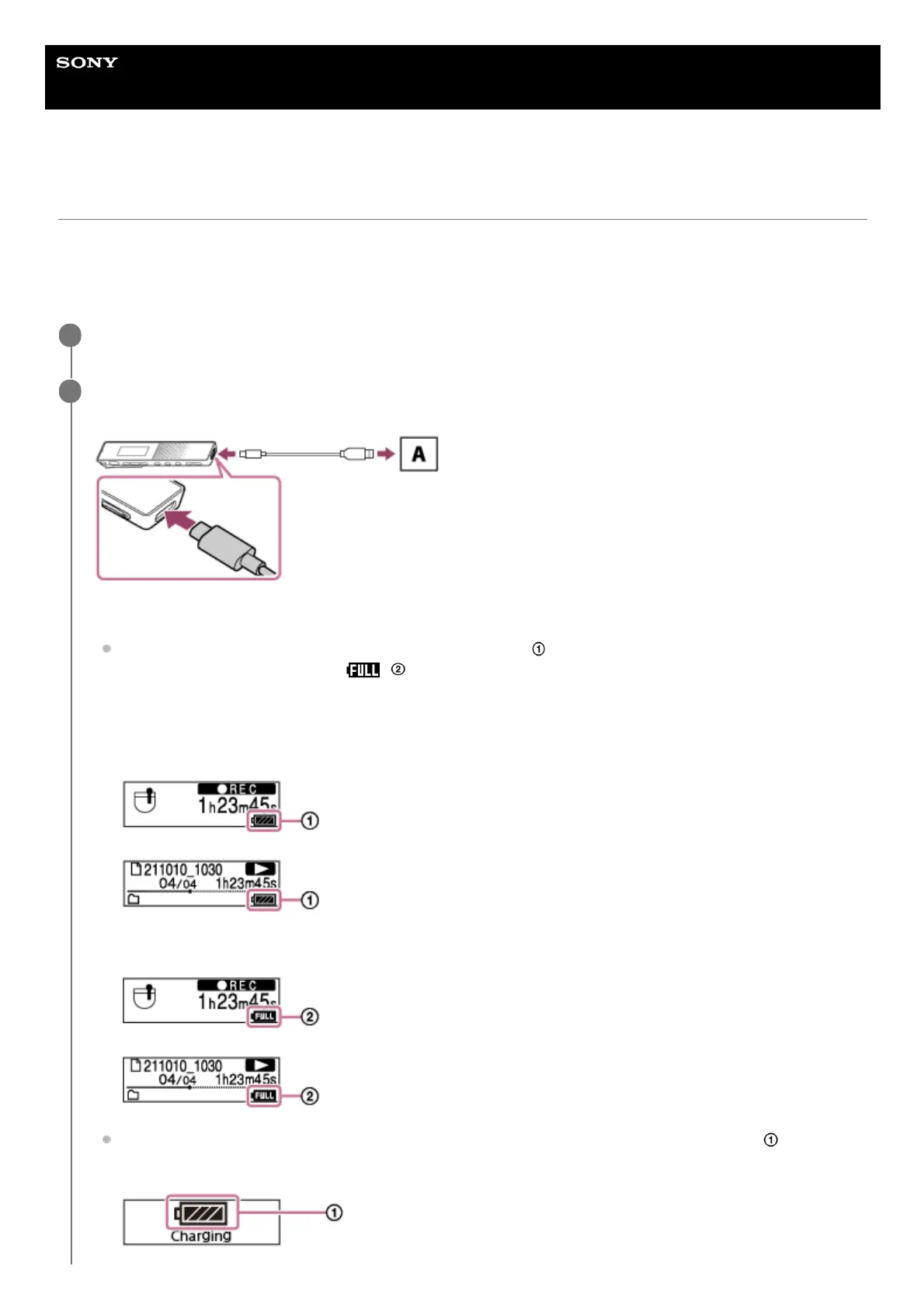 Using/Charging the IC recorder with the USB AC adaptor