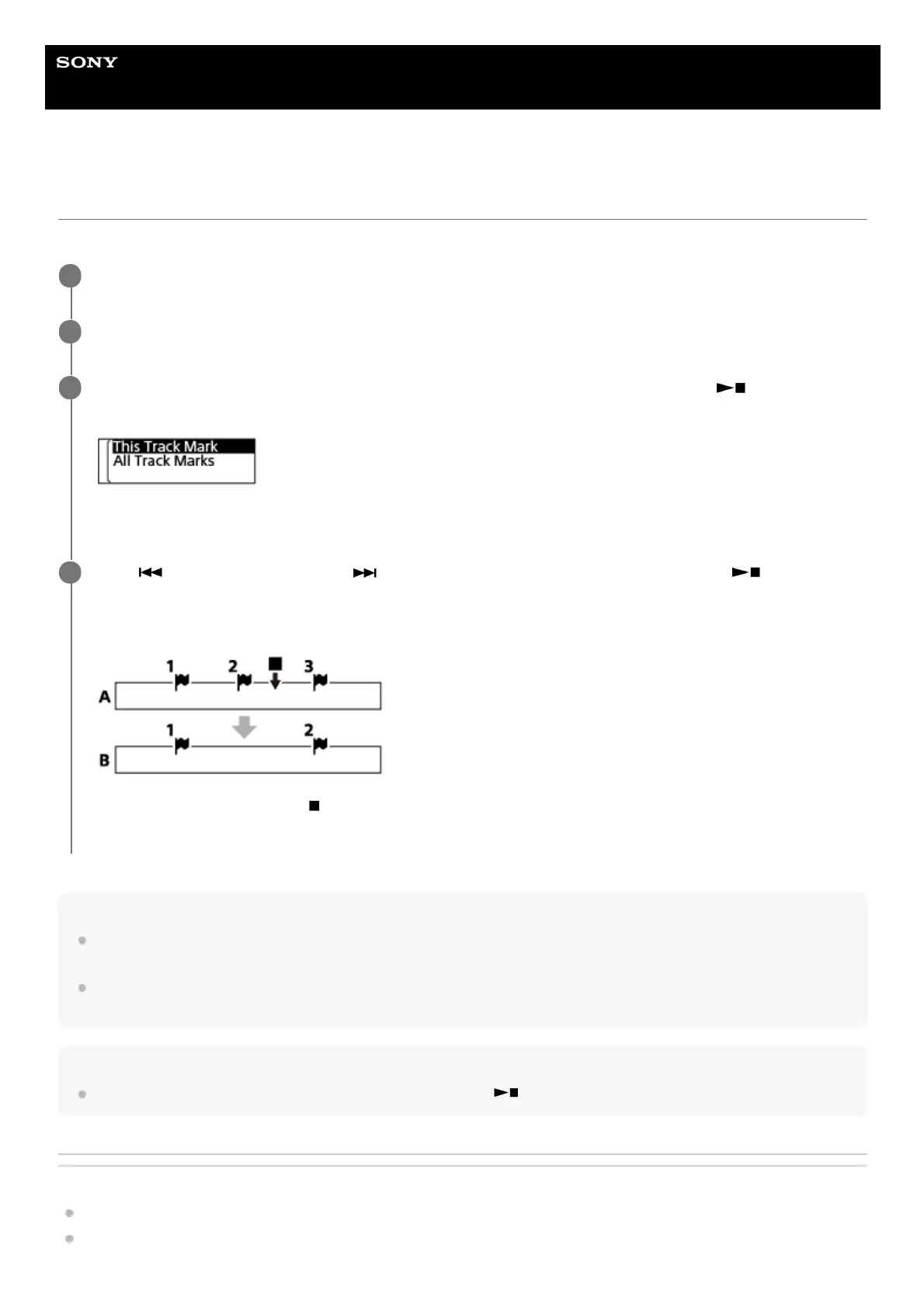 B. After deleting a track mark: The closest track mark before the point where you stopped playback will be deleted.
