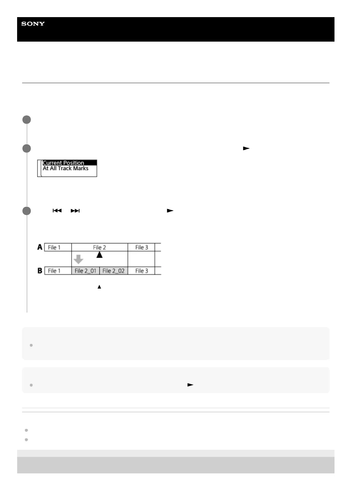 You can divide a single file into two files. Dividing a file helps you quickly locate the point from which you want to play in