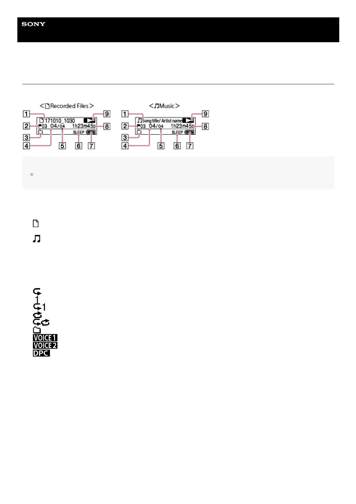 Play Mode/Playback Range/Clear Voice/DPC indicator