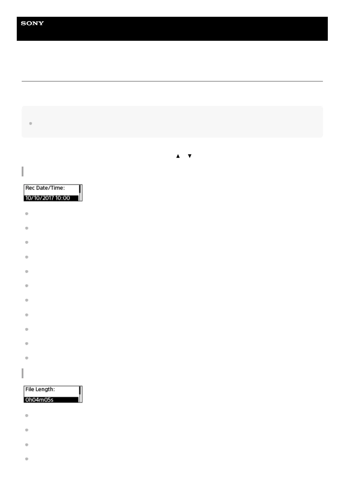 To view the information about a particular file, select a file you recorded with your IC recorder or a music file and select