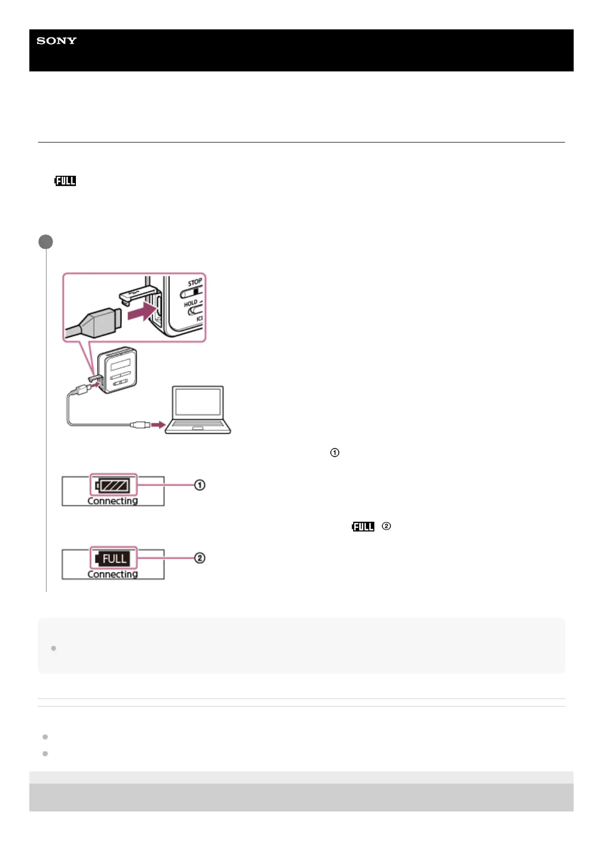 If you use the IC recorder for the first time or you have not used it for an extended period of time, charge the battery until