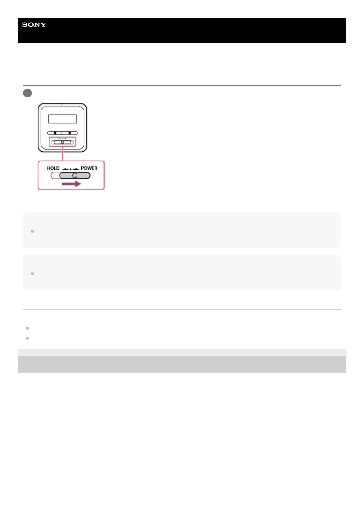 To restart your IC recorder, slide the HOLD•POWER switch to “POWER” and hold it for 8 seconds or longer. While the IC