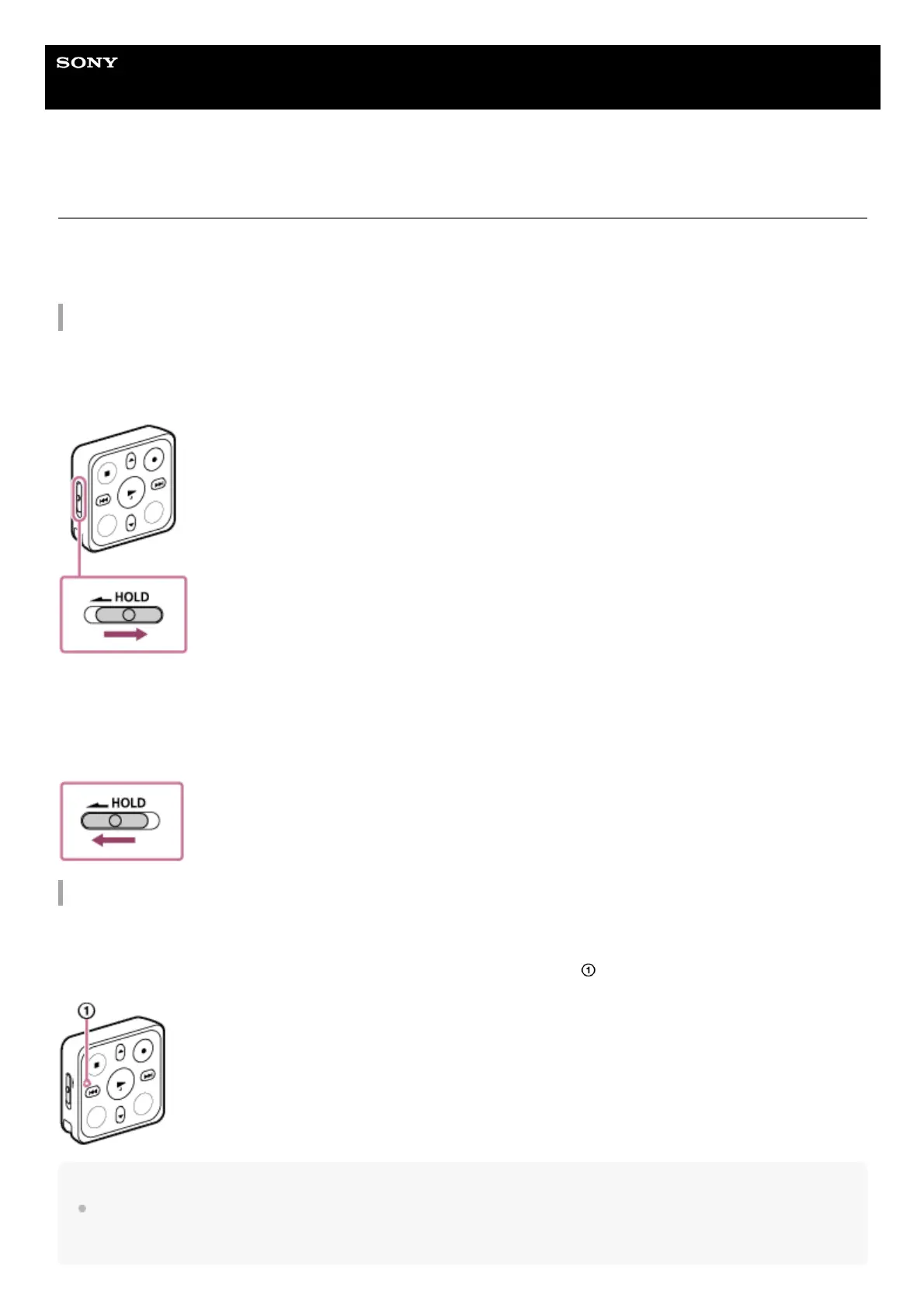 To release the remote control from the HOLD state, slide the HOLD switch away from “HOLD.”