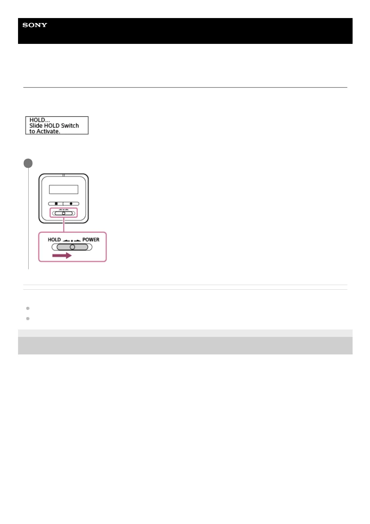 When your IC recorder is placed in the HOLD state, pressing any button displays “HOLD... Slide HOLD Switch to