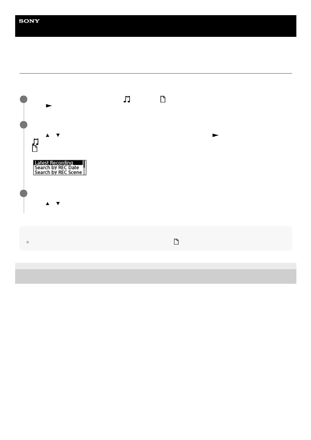Recorded Files: “Latest Recording,” “Search by REC Date,” “Search by REC Scene,” and “Folders”