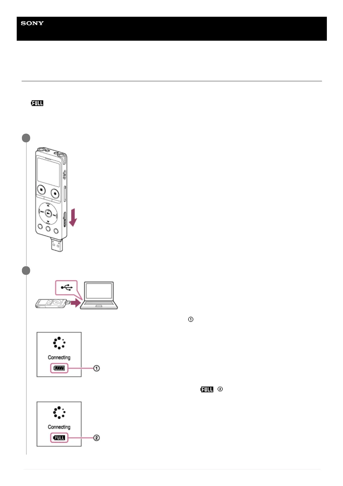 If you use the IC recorder for the first time or you have not used it for an extended period of time, charge the battery until