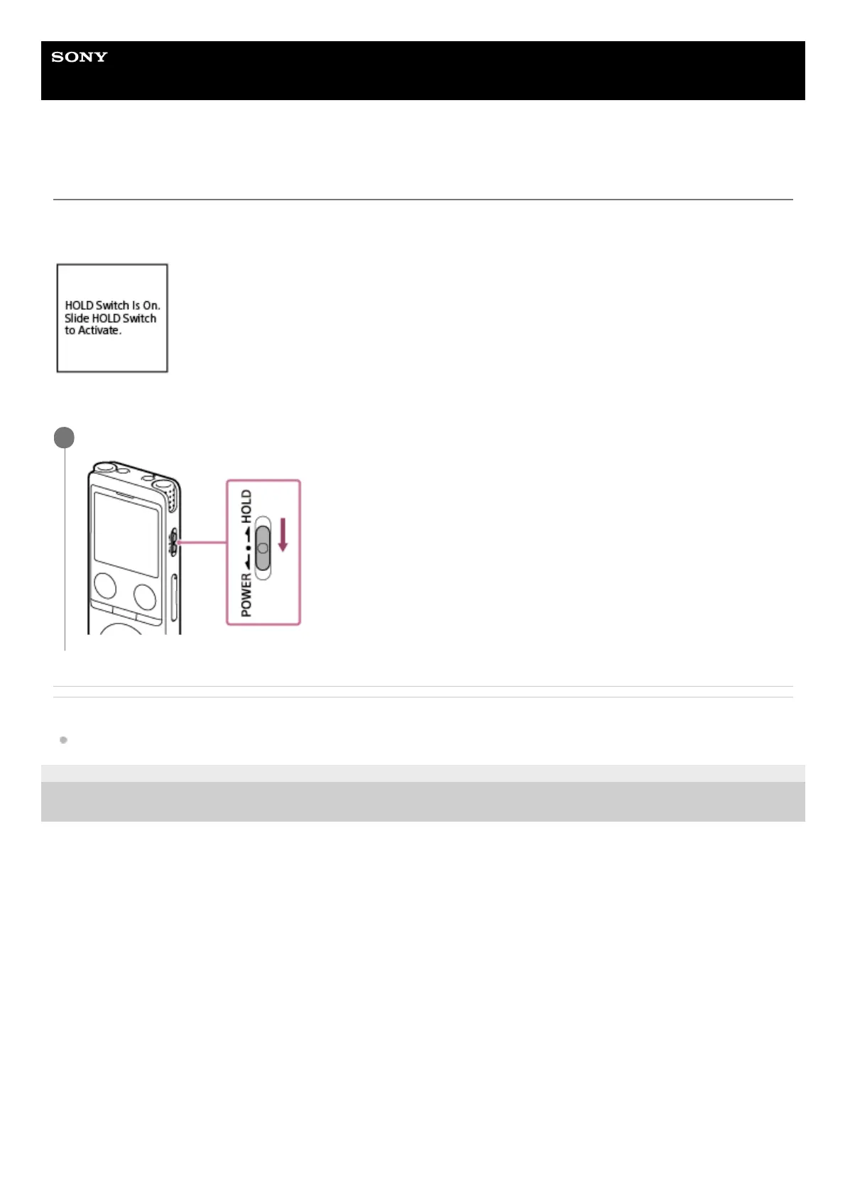 When your IC recorder is placed in the HOLD state, pressing any button displays [HOLD Switch Is On. Slide HOLD