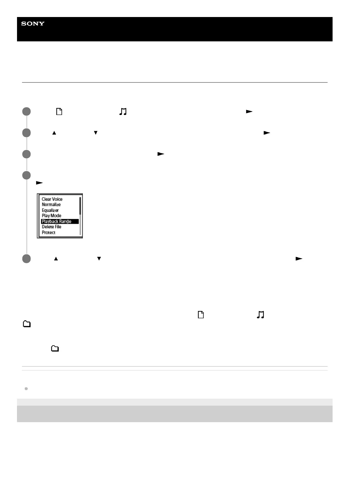 You can specify the playback range in the playback file list. The contents in the playback range vary depending on the