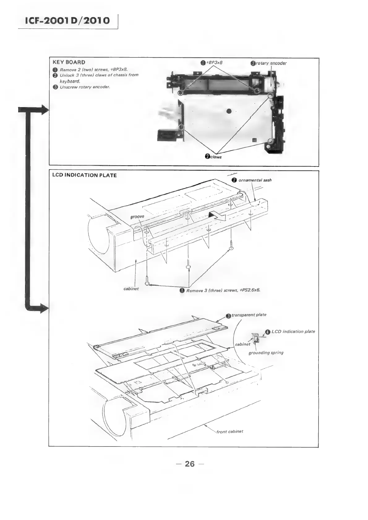 Sony ICF-2001D - Keyboard and LCD Plate Reassembly; Keyboard Component Removal and Reassembly; LCD Plate and Cabinet Reassembly