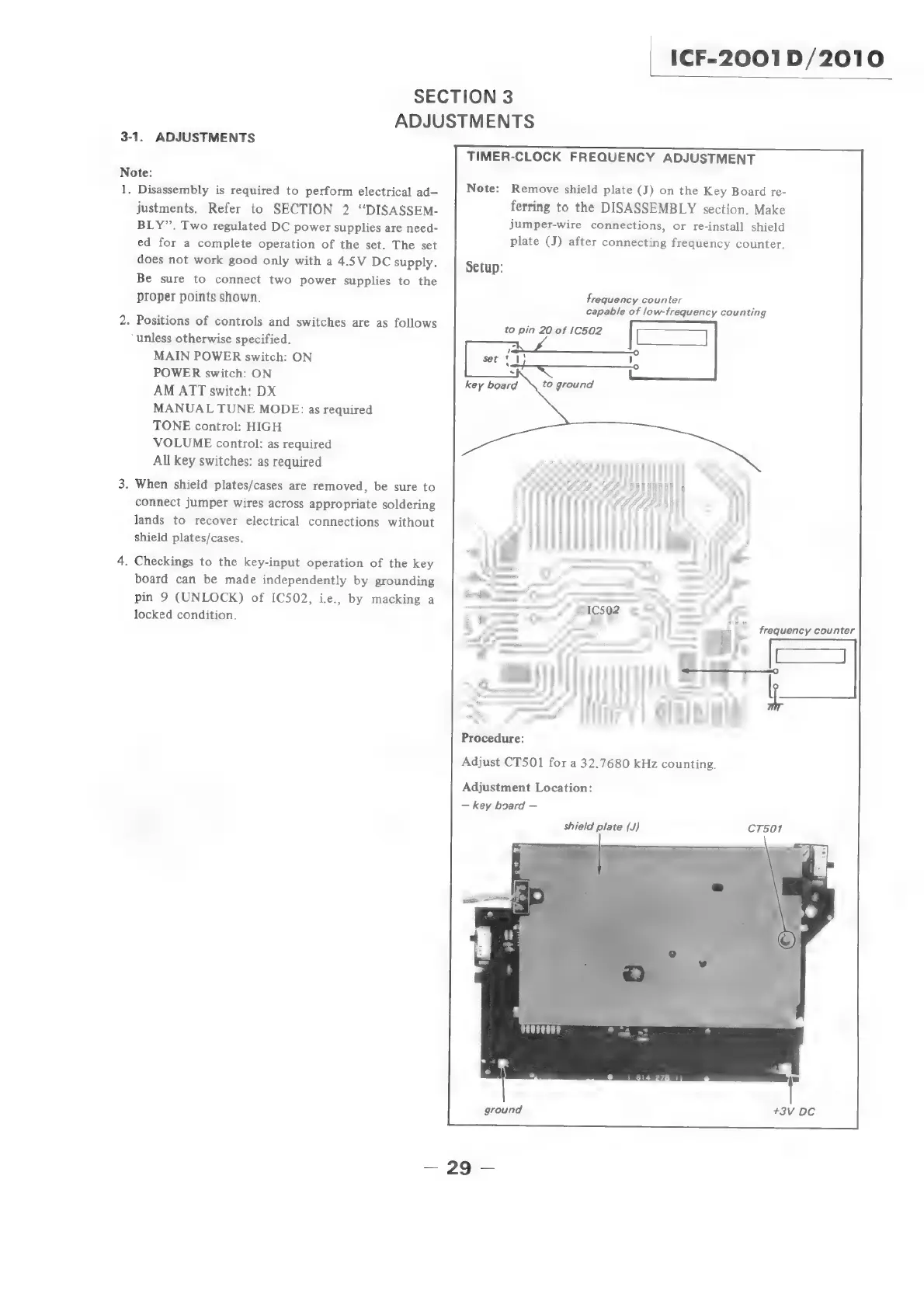 Sony ICF-2001D - Adjustments; Timer-Clock Frequency Adjustment