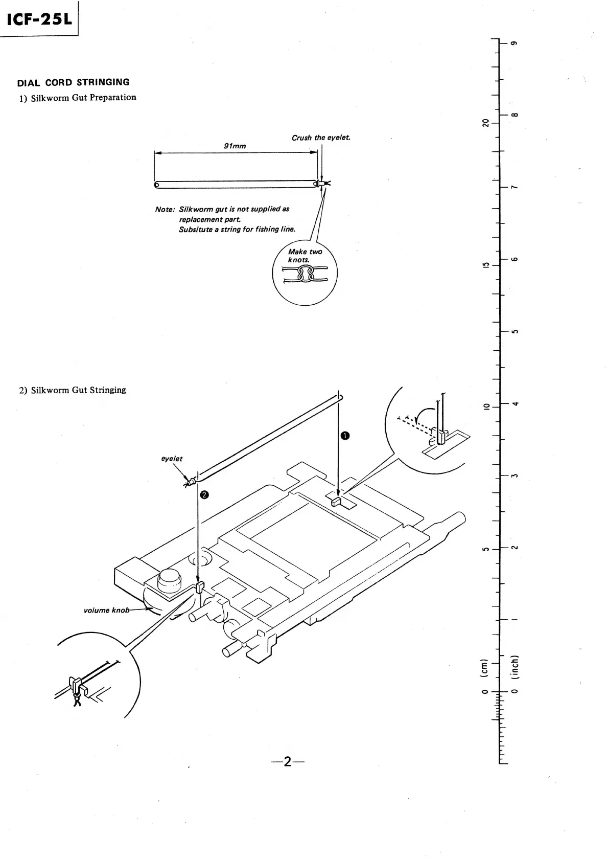 Sony ICF-22 - DIAL CORD STRINGING PROCEDURE; SILKWORM GUT PREPARATION; SILKWORM GUT STRINGING