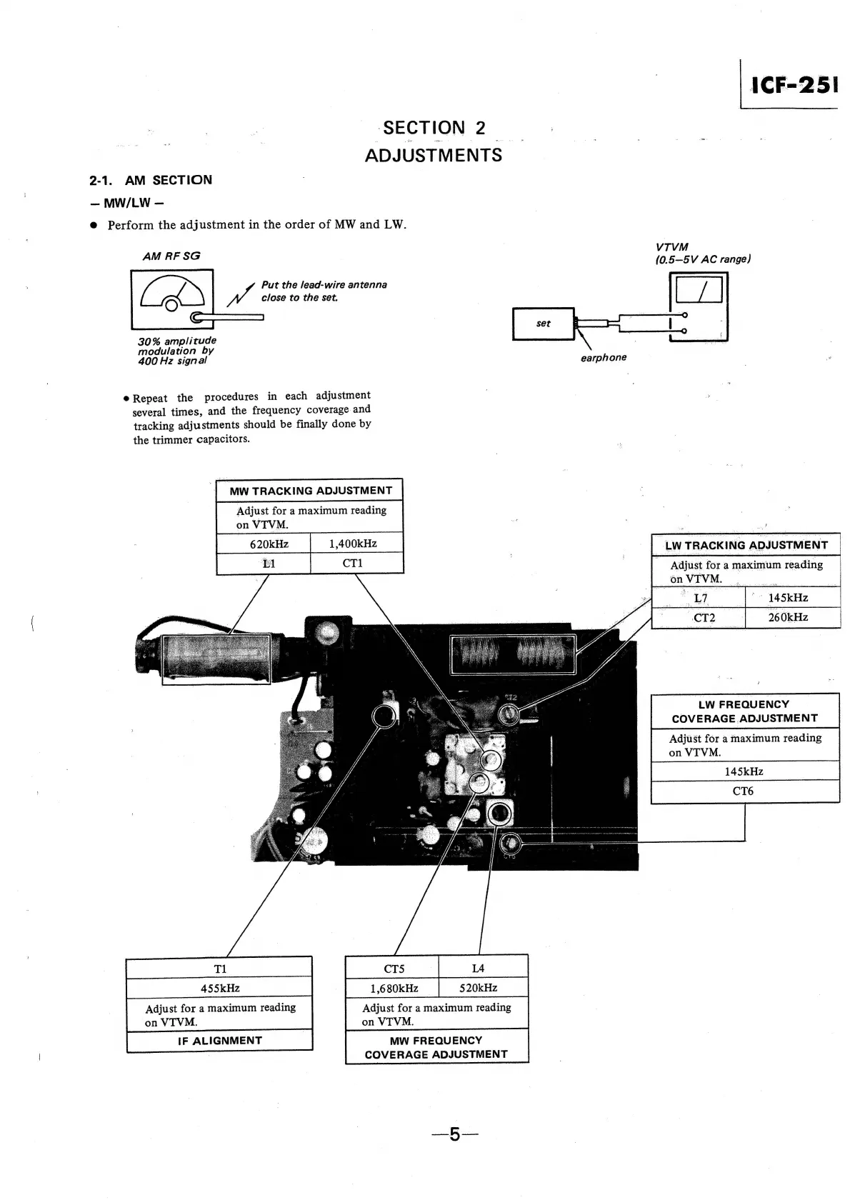Sony ICF-22 - ADJUSTMENT PROCEDURES; AM SECTION ADJUSTMENTS; AM BAND SPECIFIC ALIGNMENTS