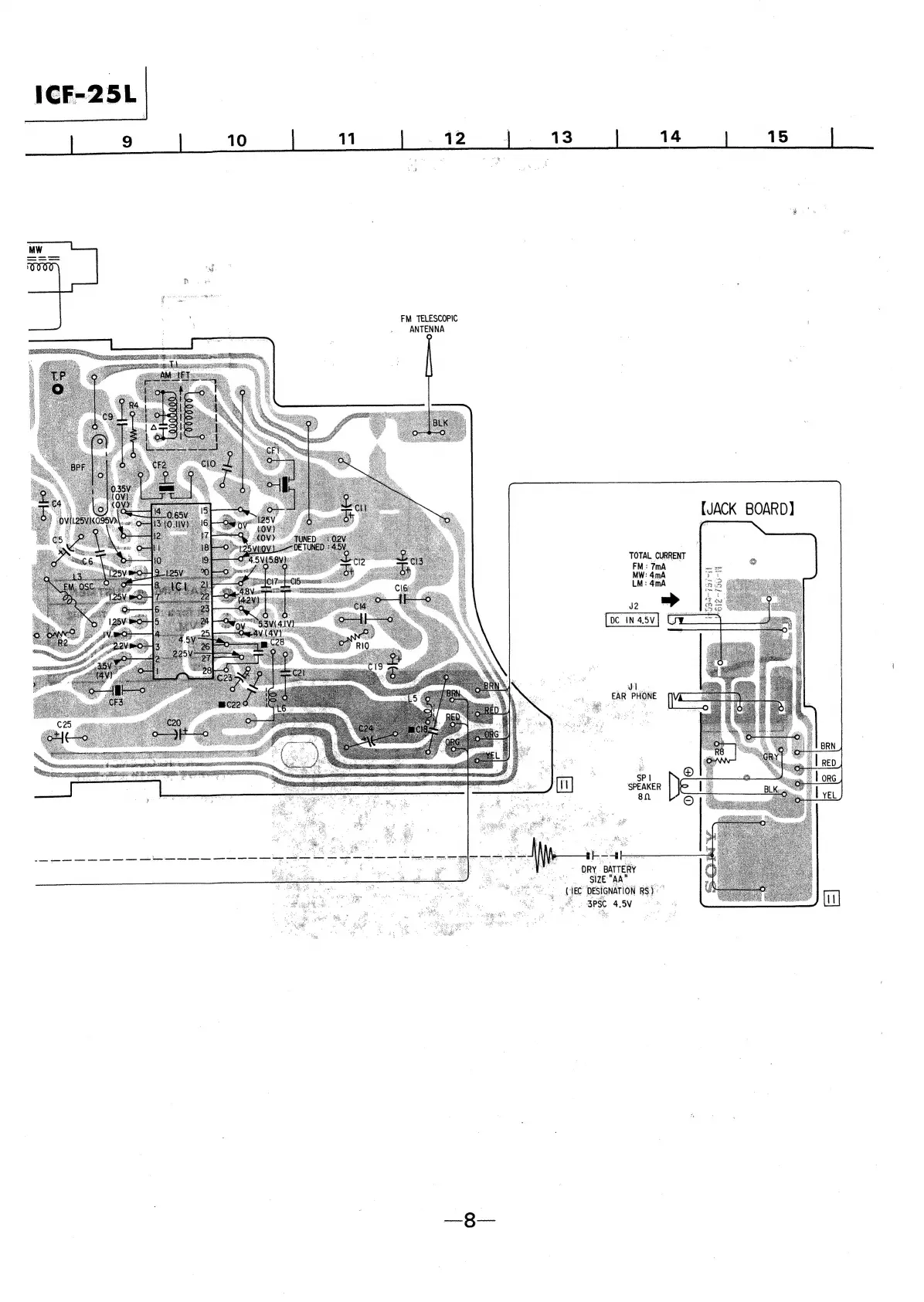 Sony ICF-22 - SCHEMATIC DIAGRAM; MAIN BOARD SCHEMATIC; JACK BOARD SCHEMATIC