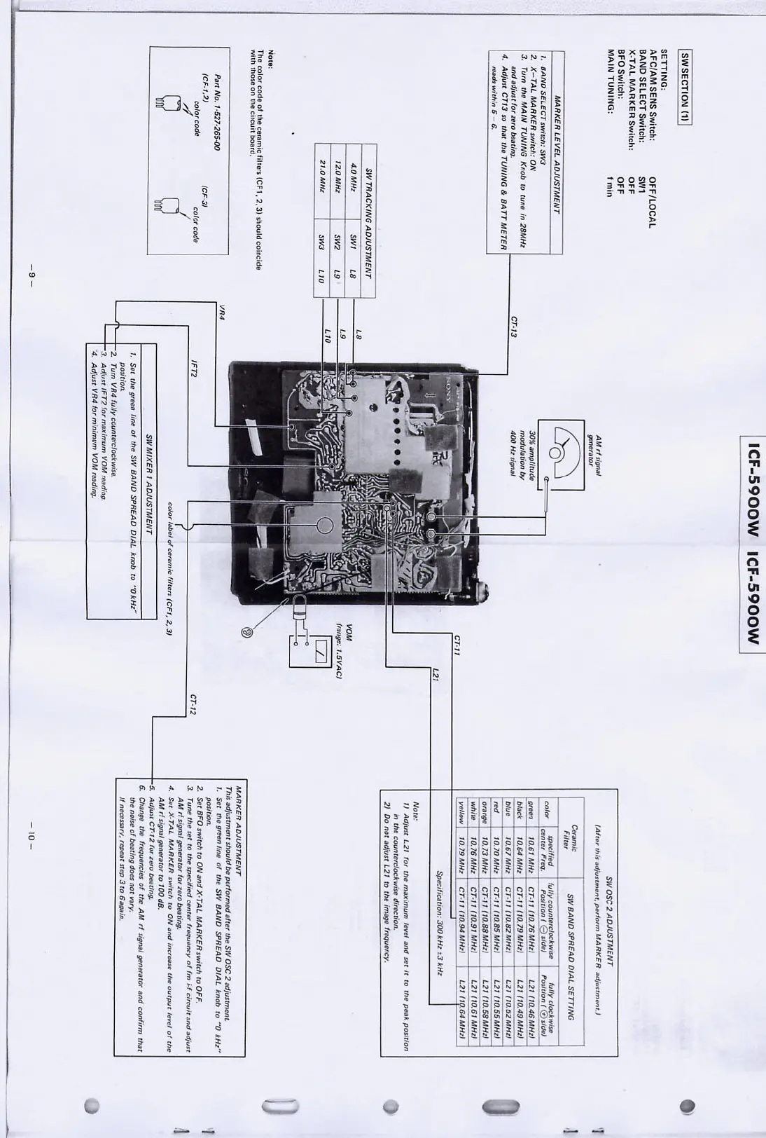 Sony ICF-5900W - SECTION 3 SW SECTION ADJUSTMENTS; SW Marker Level and Tracking Adjustment; SW Mixer and Oscillator Calibration; SW Marker Adjustment Procedure