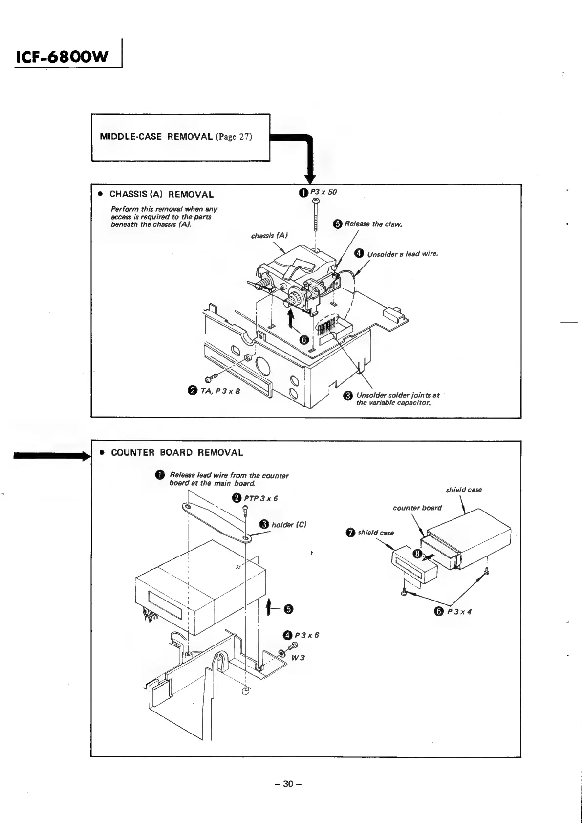 Sony ICF-6800W - Chassis (A) and Counter Board Removal