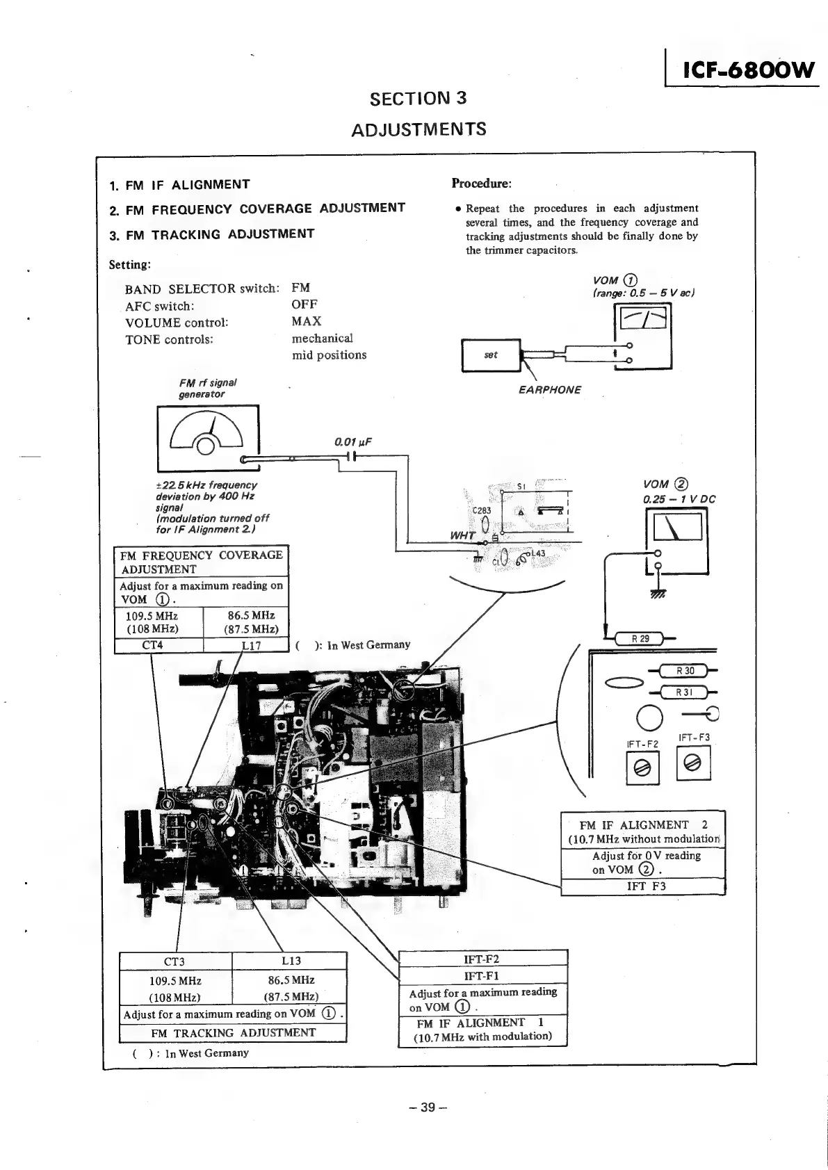Sony ICF-6800W - SECTION 3 ADJUSTMENTS; FM Alignment and Tracking