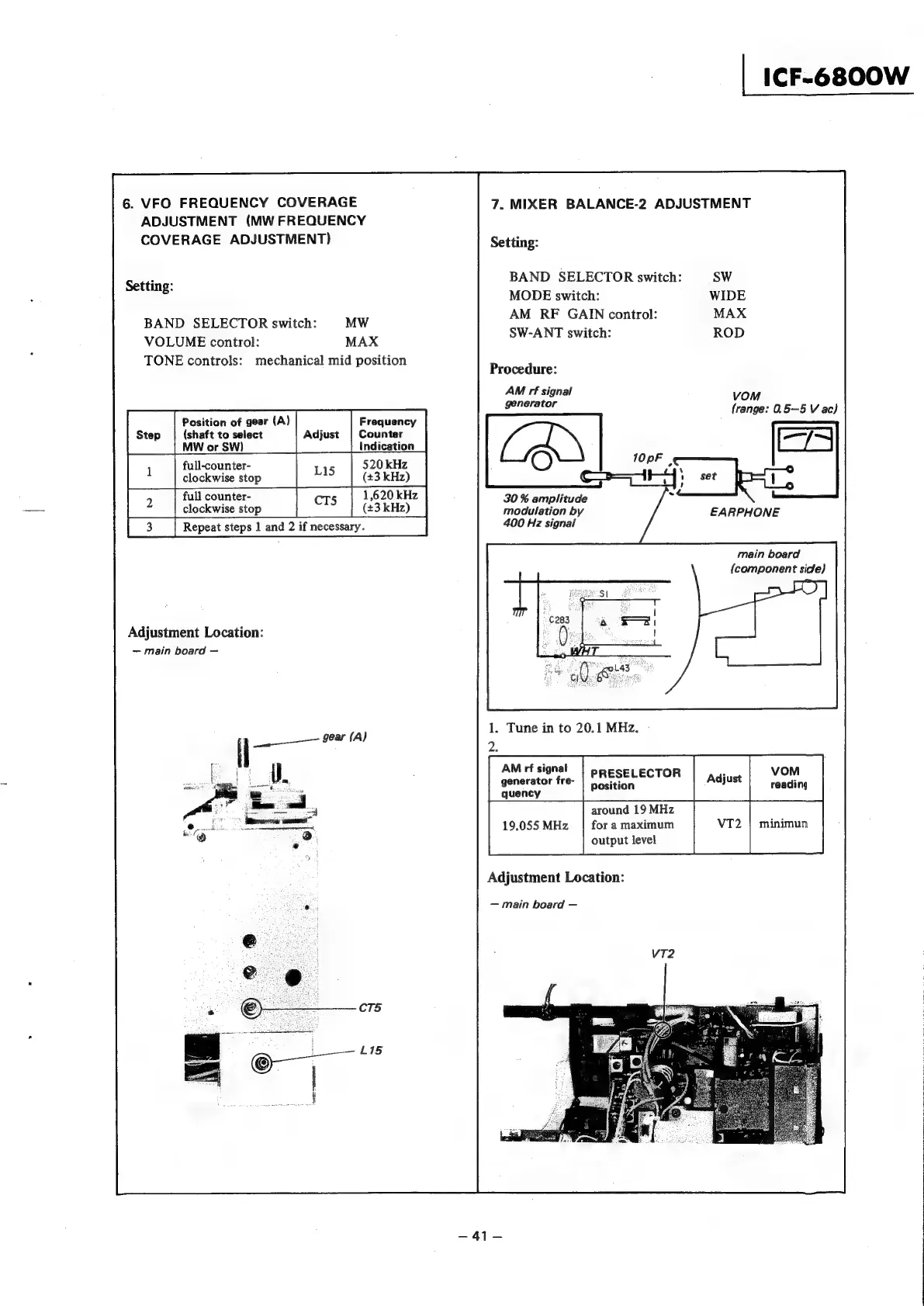 Sony ICF-6800W - VFO and Mixer Adjustments