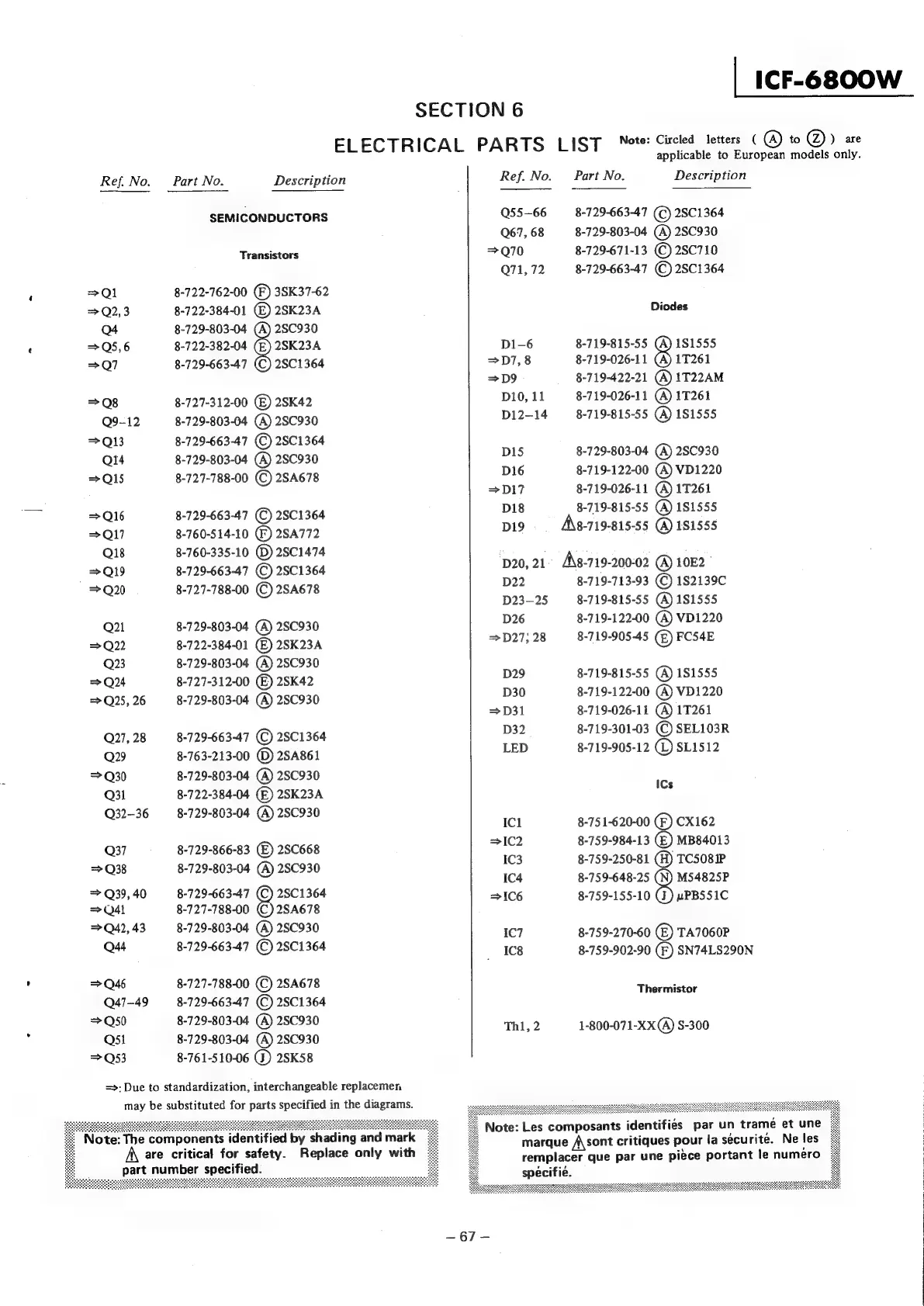 Sony ICF-6800W - SECTION 6 ELECTRICAL PARTS LIST; Semiconductors; Integrated Circuits (ICs)
