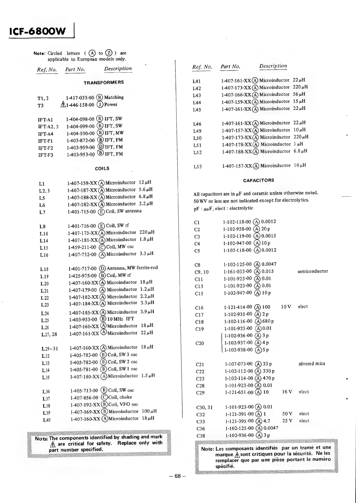 Sony ICF-6800W - Transformers, Coils, and Capacitors