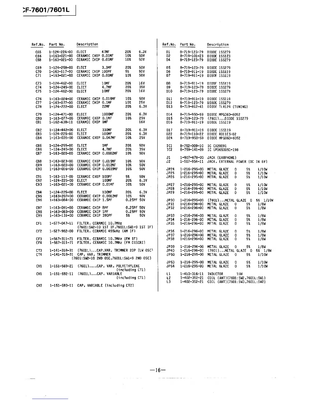 Sony ICF-7601 - Component Details and Accessories; Diodes and Integrated Circuits