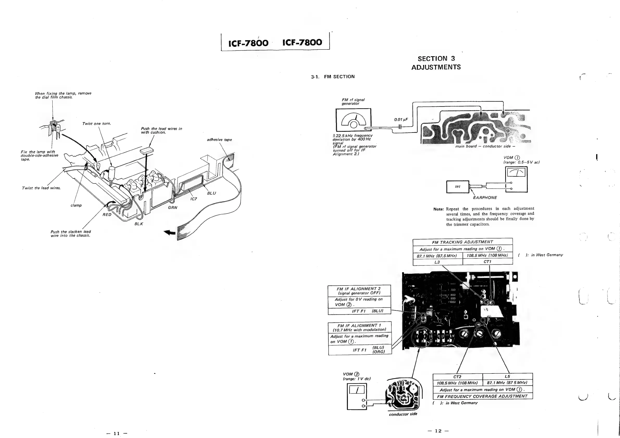 Sony ICF-7800 - SECTION 3 ADJUSTMENTS - FM (Continued); FM Frequency Coverage Tuning