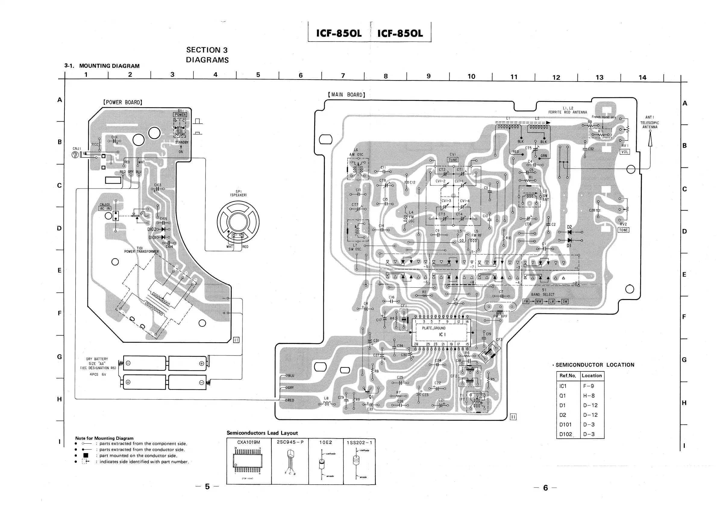 Sony ICF-860L - Section 3 Diagrams and Layouts; Mounting Diagram; Semiconductor Lead Layout