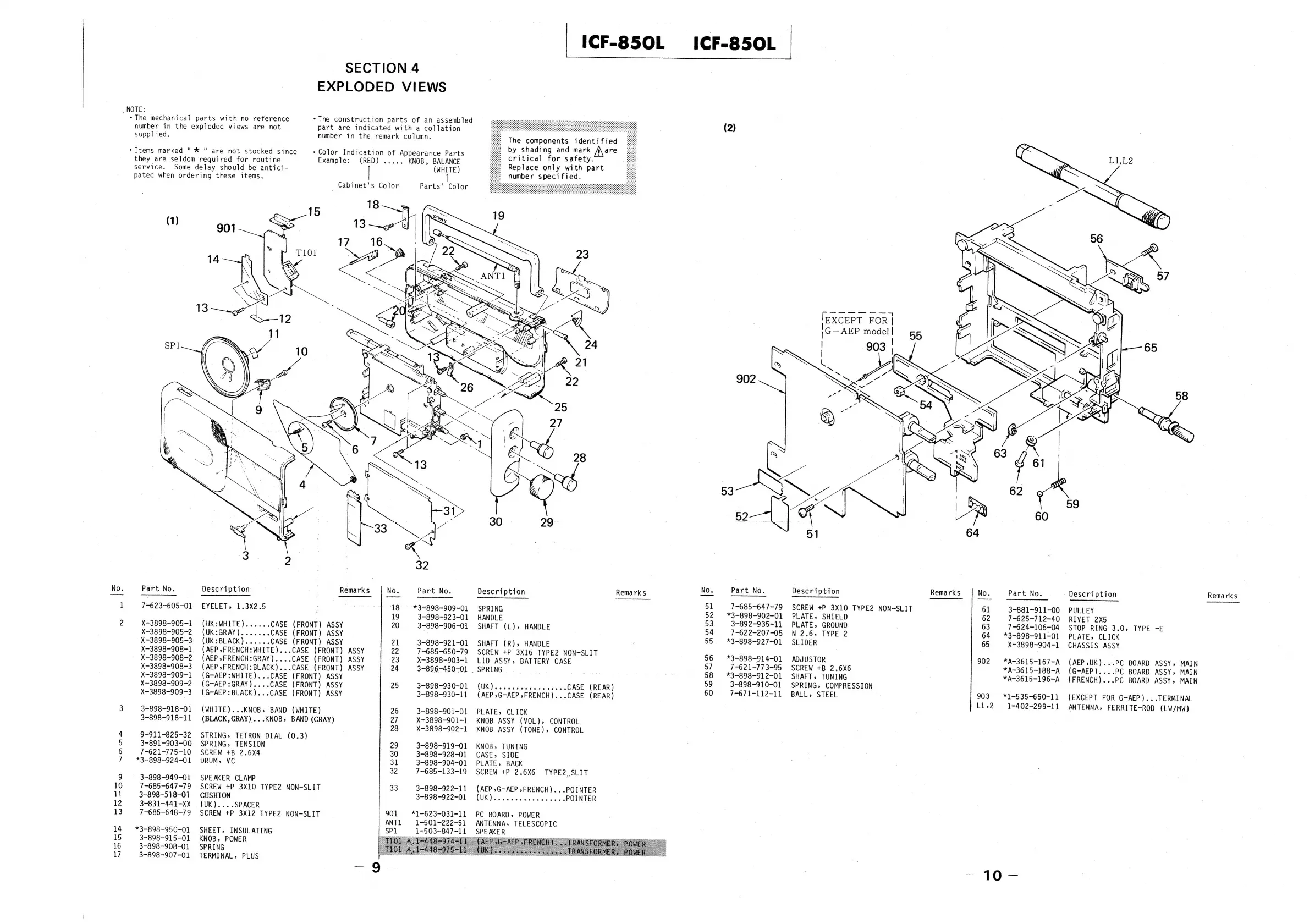 Sony ICF-860L - Section 4 Exploded Views and Parts; Mechanical Parts Exploded View; Part Number Cross-Reference