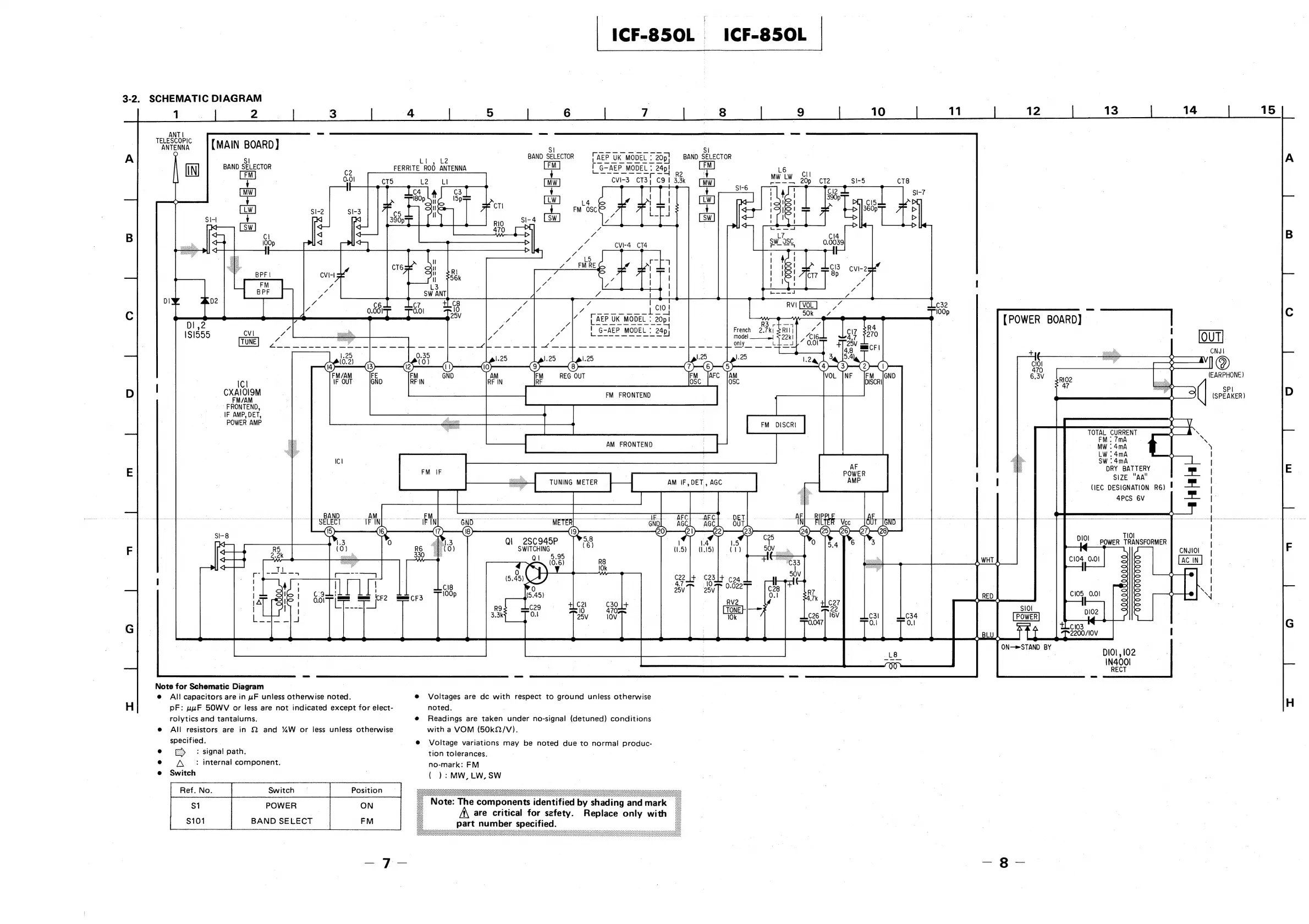 Sony ICF-860L - Section 3-2 Schematic Diagram; Main Board Schematic; Power Board Schematic