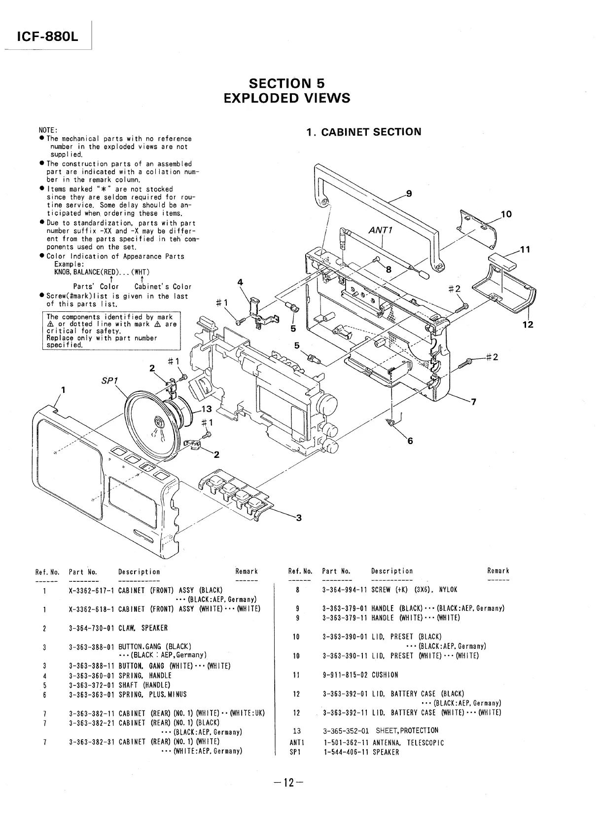 Sony ICF-990L - Section 5 Exploded Views; Cabinet Section
