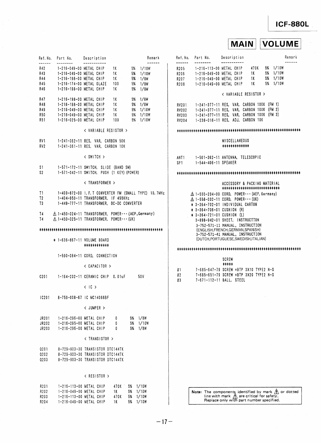 Sony ICF-990L - Variable Resistors and Accessories