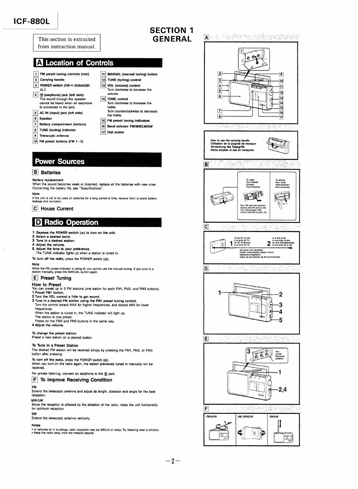 Sony ICF-990L - Section 1 General; Location of Controls; Power Sources; Radio Operation Guide