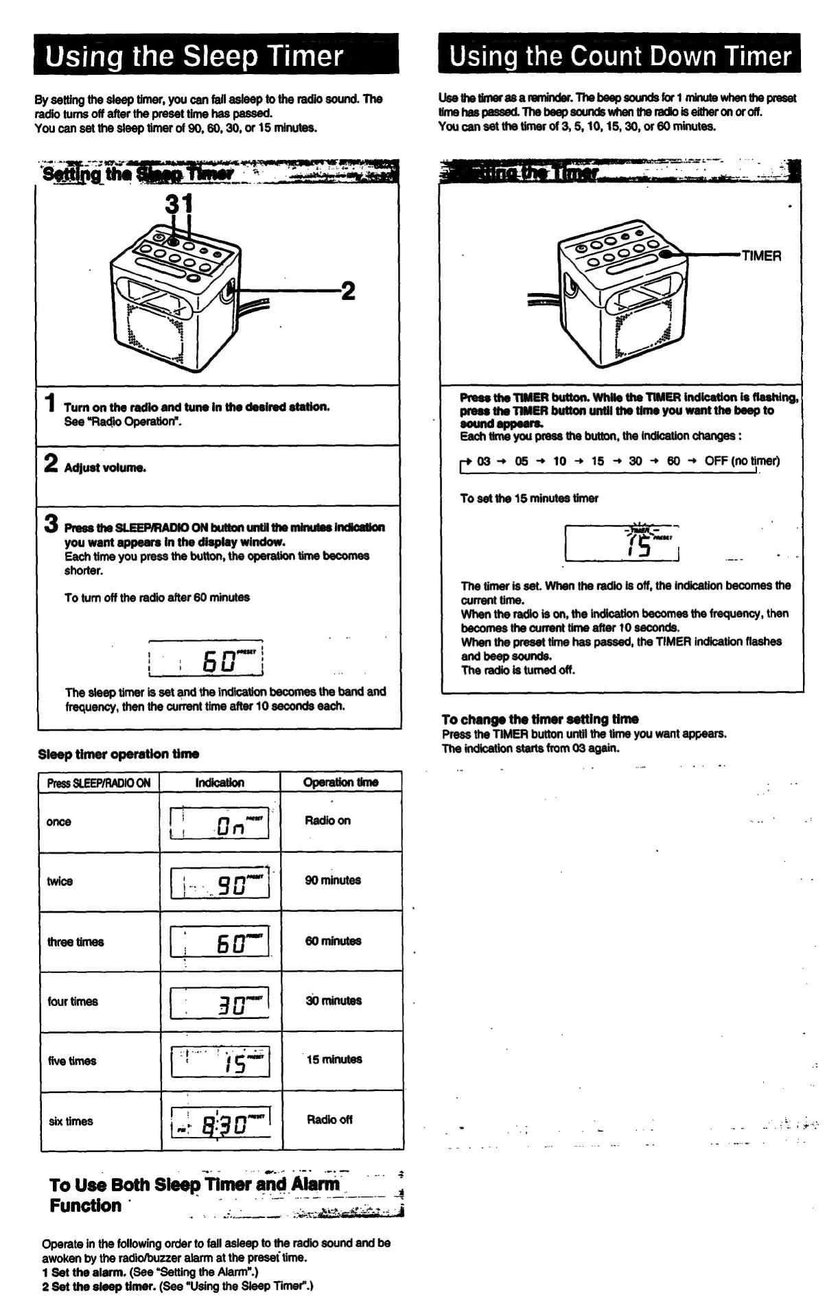 Sony ICF-C103 - Using the Sleep Timer; Using the Countdown Timer