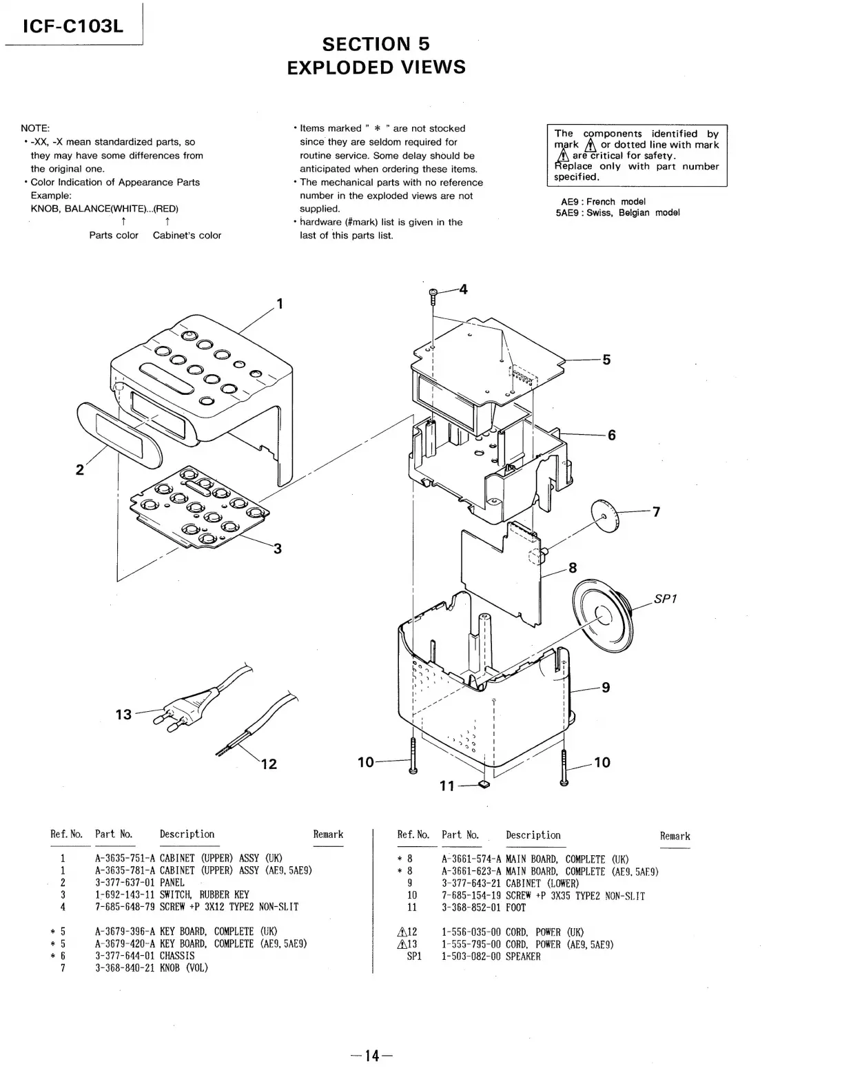 Sony ICF-C103L - Section 5 Exploded Views