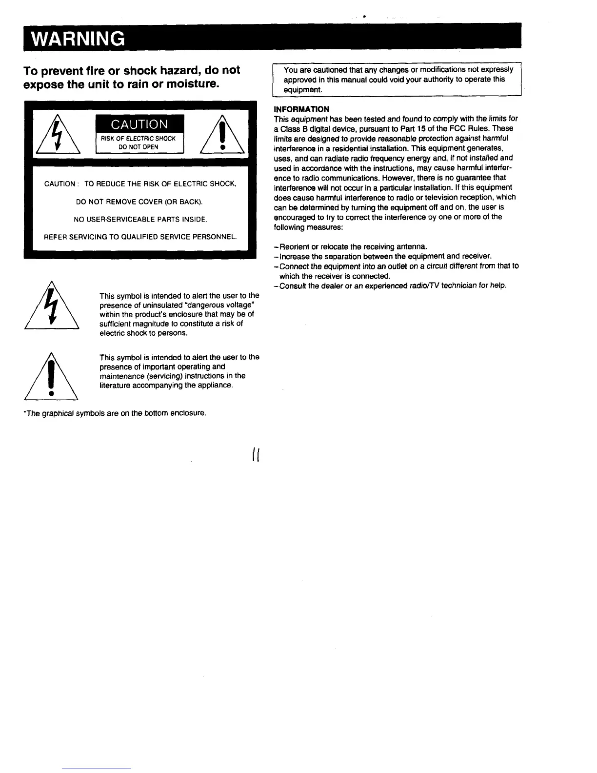 Sony ICF-C203 - WARNING; Cautionary Measures; Information and Compliance