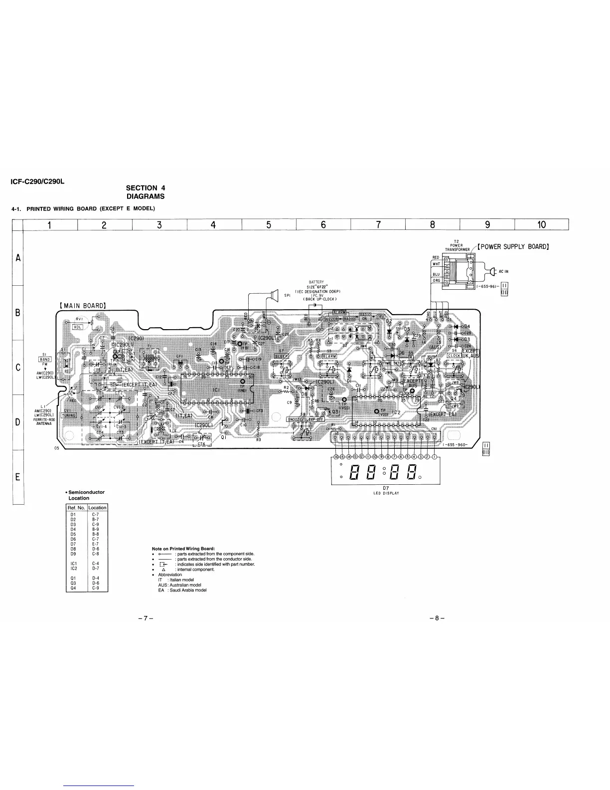 Sony ICF-C290 - Diagrams and Circuit Layouts; Printed Wiring Board Layout (Except E Model)