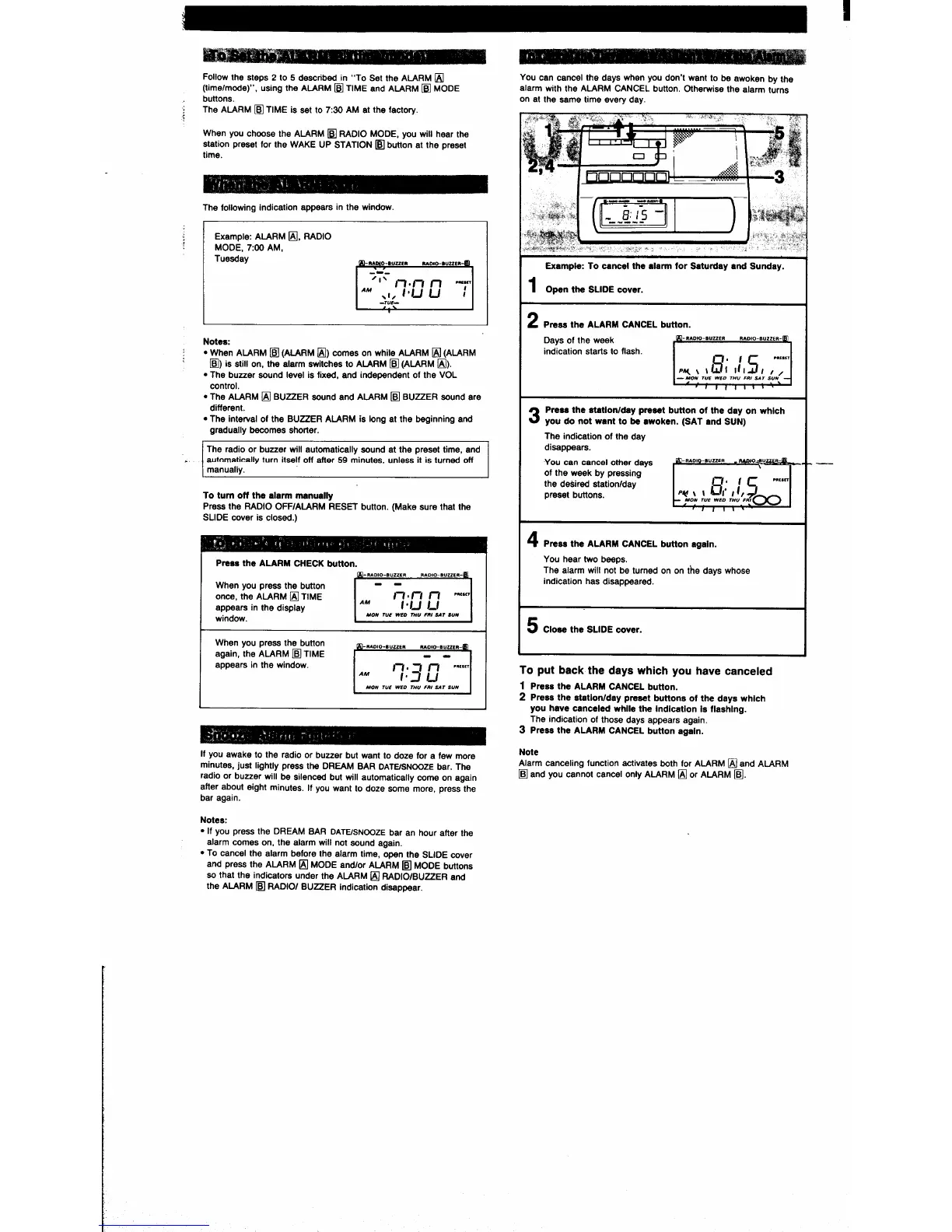 Sony ICF-C303 - Alarm Functions; Setting Alarm B; Alarm Cancellation; Alarm Check and Snooze