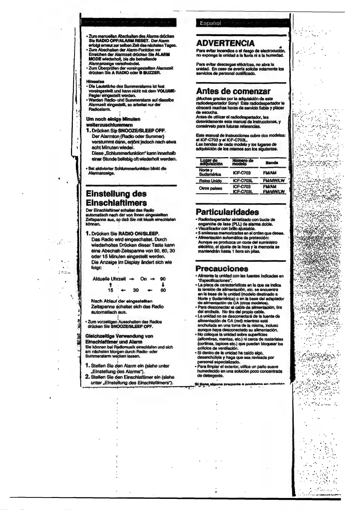 Sony ICF-C703 - Antes de Comenzar; Einstellung des Einschlaftimers