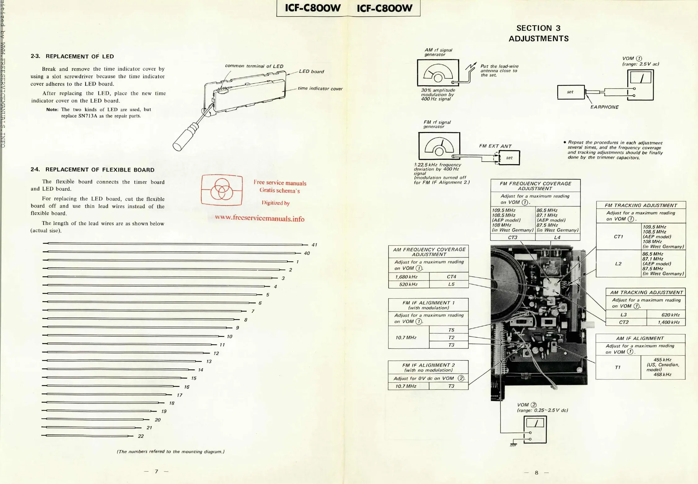 Sony ICF-C800W - Adjustments; Replacement of LED; Replacement of Flexible Board
