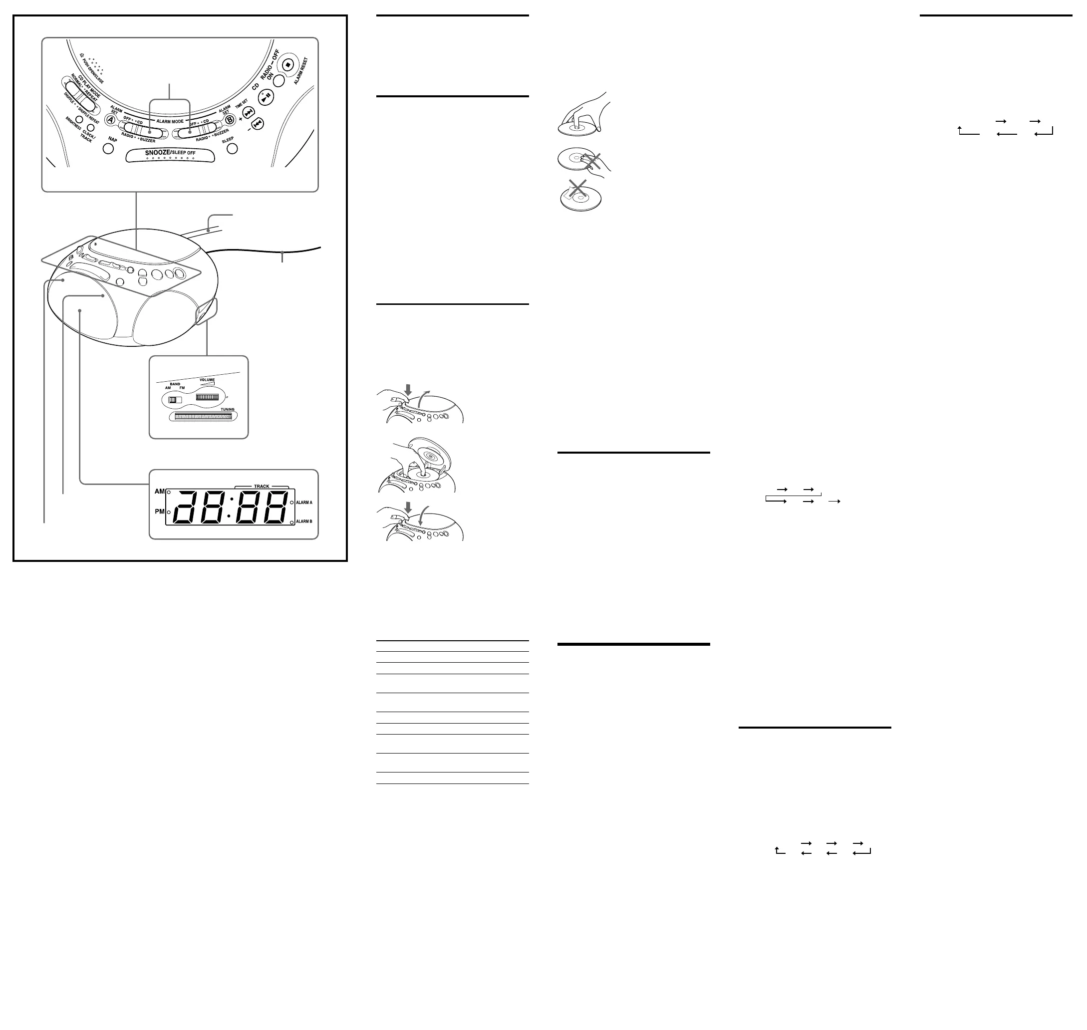CD, radio and buzzer. Before setting the alarm, make