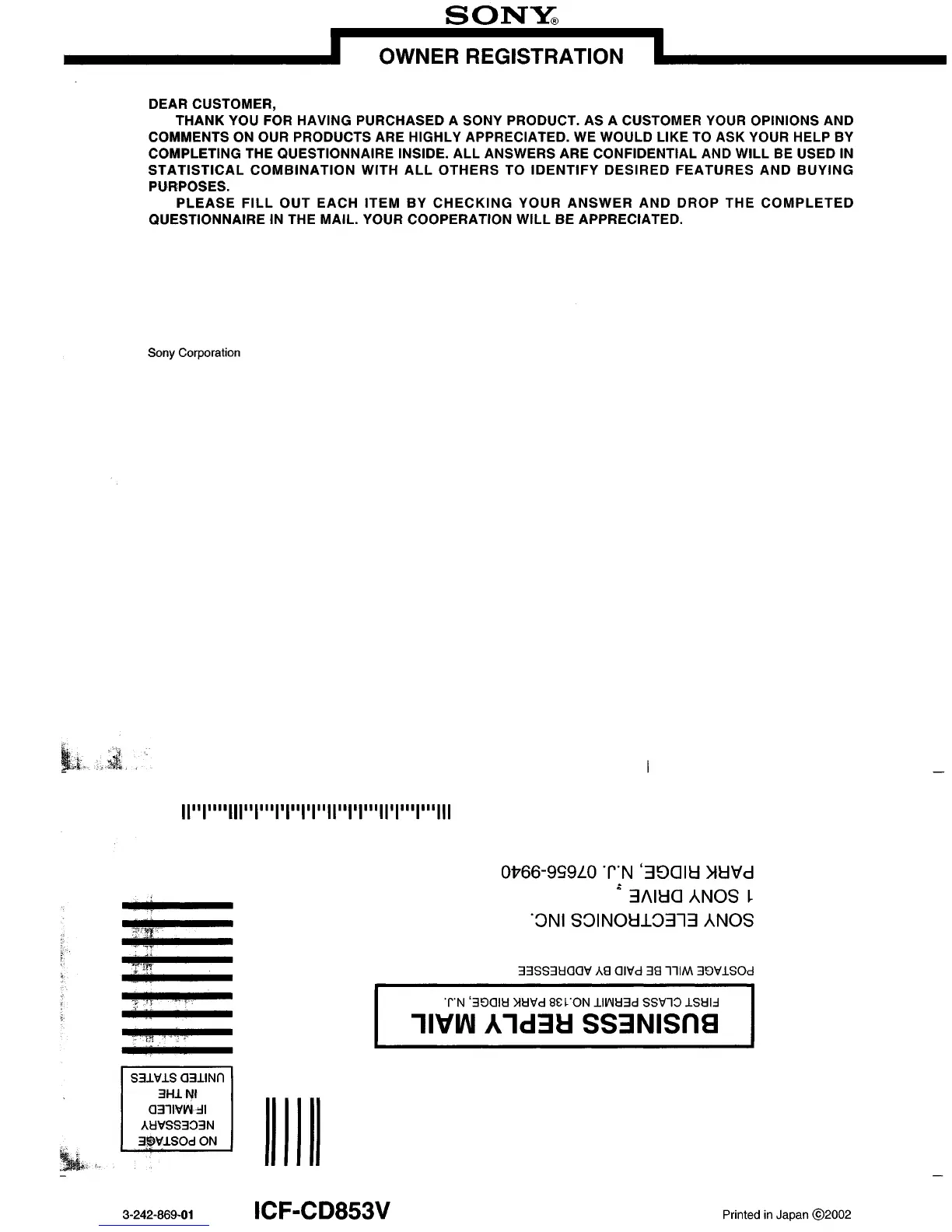 Other manuals for Sony ICF-CD853V