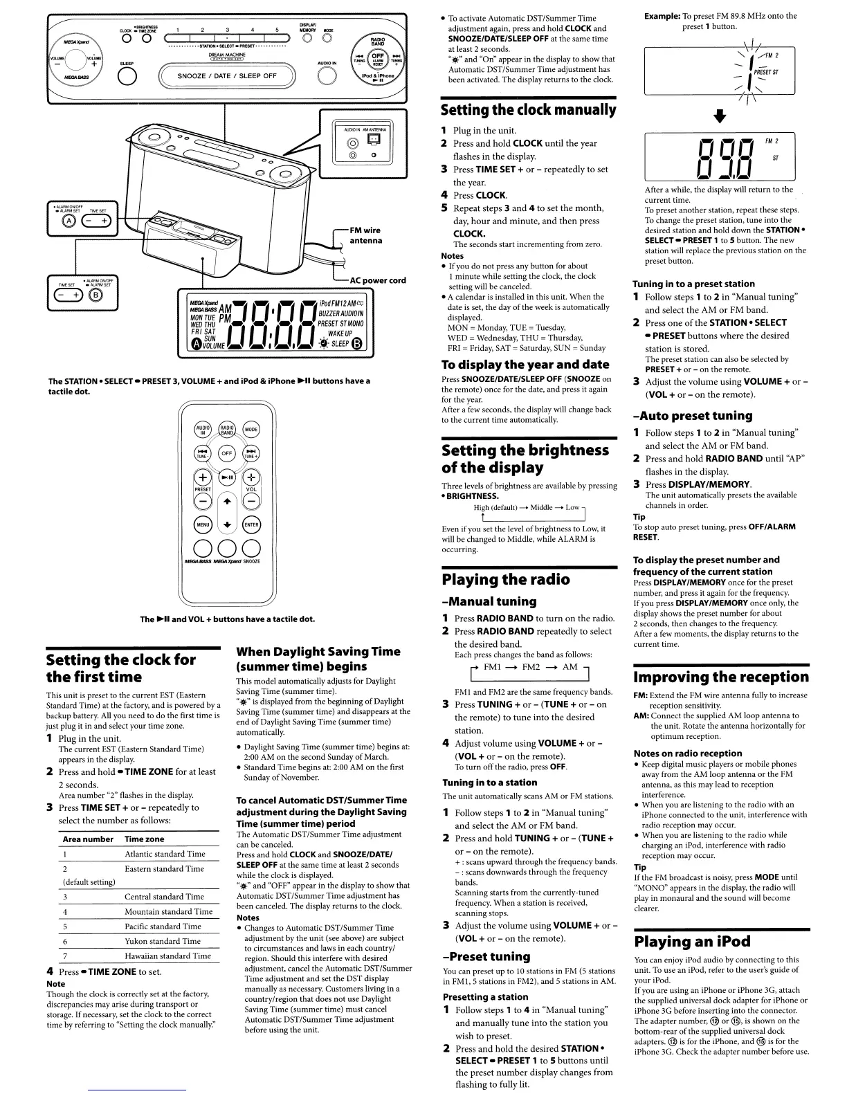 time by referring to "Setting the clock
