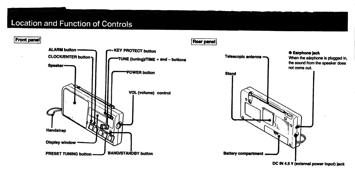 Sony ICF-M350V - Location and Function of Controls; Front Panel Controls; Rear Panel Controls